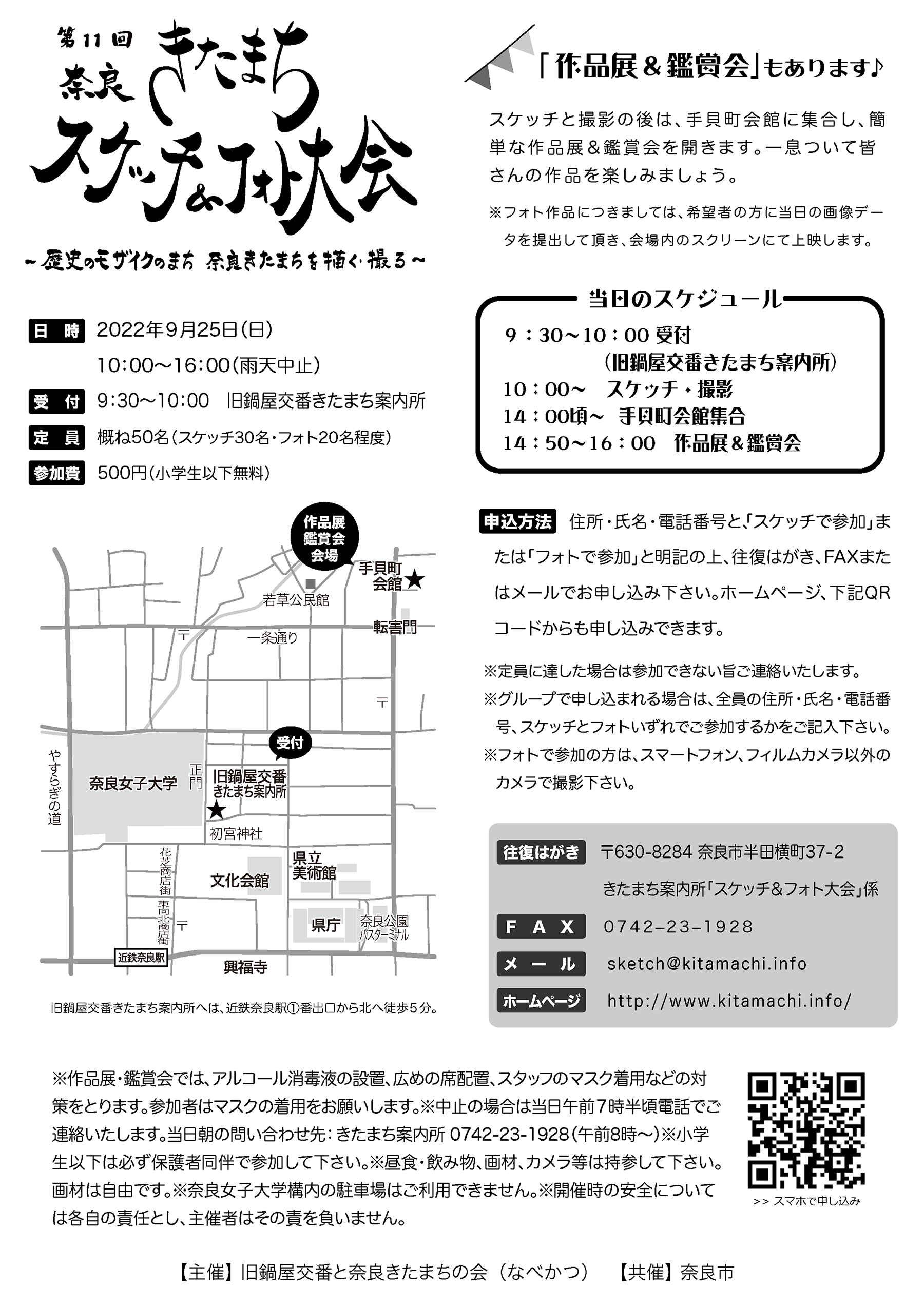 ※中止の場合は当日午前7時半頃電話でご連絡いたします。当日朝の問い合わせ先:きたまち案内所 0742-23-1928 (午前8時〜)